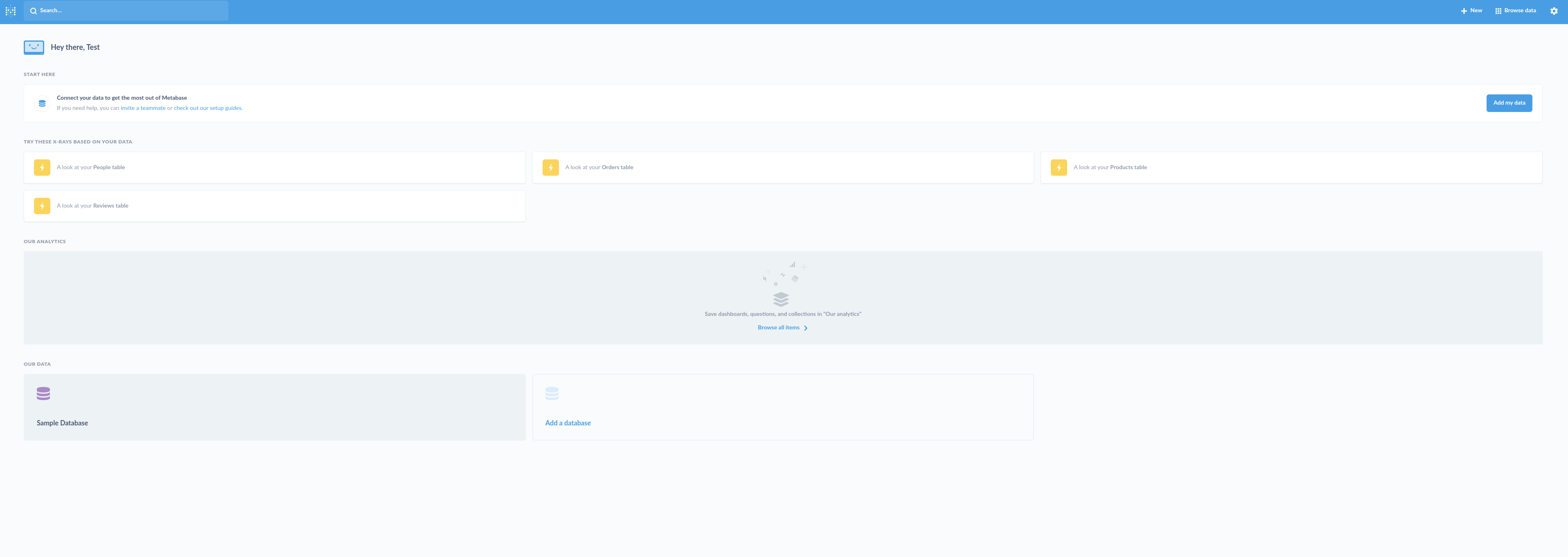 java -jar metabase.jarto restart Metabase to load the driver properly.Access Metabse at http://127.0.0.1:3000.