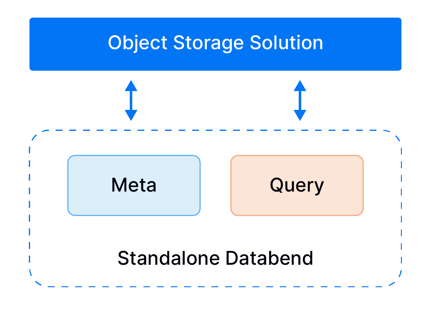When you deploy Databend in standalone mode, you host a Meta node and a Query node on the same machine or separately. For more information about how to deploy Databend in standalone mode with various object storage solutions, see Deploying a Standalone Databend.